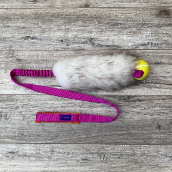 Szarpak wykonany jest z naturalnego, owczego futra oraz miękkiej taśmy.